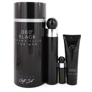 Set 360 Black For Men 3pc. Edt 3.4oz Spray + 3.0oz Shower Gel + 0.25oz Edt Spray