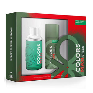 Set Benetton Colors Man Green 2pc 3.4oz Spray + Deodorant Body Spray 5.1oz