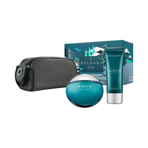 Set Bvlgari Aqva 3pc. Edt 3.4oz Spray + 3.4oz After Shave Balm + Pouch